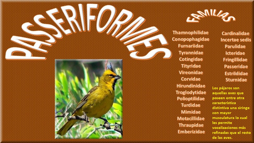 REINO: Animal FILO: Cordados CLASE: Aves ⇓ ORDENES ⇓ |