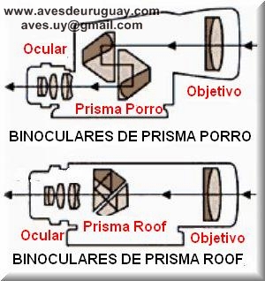 Tanto en el anteojo derecho como izquierdo se utilizan dos prismas para desviar el recorrido de la luz.