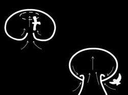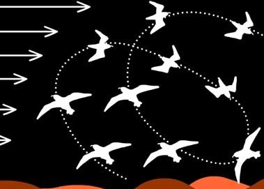Origen del vuelo Dos teorías de su origen (ver imágenes). 1) Teoría del origen arbóreo del vuelo: Las plumas que cubrían el cuerpo de las primeras aves regulaban su temperatura corporal. También poseían cierta longitud y firmeza que les ayudaba a realizar planeos como los que realizan algunas ardillas y lagartijas voladoras. Las primeras aves eran trepadoras con dedos y garras en las alas, como los que tiene el Archaeopteryx. Estas aves primitivas después de trepar se dejaban caer de las ramas de los árboles realizando planeos cortos para huir de sus depredadores o atrapar sus presas. La evolución hizo el resto 2) Teoría del origen cursorial, Propone la existencia de aves primitivas corredoras que fueron desarrollando una mayor área en las extremidades superiores, para equilibrar al animal durante sus carreras, hasta que finalmente lograron elevarse aprovechando el impulso. Otros usos de las alas Las alas se utilizan también para otros tipos de actividades. Se han aplanado en los pingüinos transformándose en aletas para nadar. Algunas especies de patos y los petreles buceadores, las utilizan para "volar" dentro y fuera del agua. Las garzas utilizan sus alas para hacer sombra sobre el agua y atraer a los peces, los búhos abren sus alas para simular que aumentan de tamaño y otras las usan para producir ruidos durante el cortejo. Mecánica del vuelo La mecánica del vuelo incorpora cuatro fuerzas que se aplican sobre el ave. 1) Empuje. 2) Peso. 3) Roce. 4) Levante. Estas fuerzas actúan sobre un ala con una curvatura similar a una gota alargada, cóncava en la parte inferior, convexa en la superior, con una parte afilada en la parte anterior formada de piel con plumas, muy elástica y resistente llamada patagio. Forma aerodinámica. Durante el paso del aire se genere una diferencia de velocidades entre las dos caras del ala, siendo más rápida en la parte superior al recorrer más distancia. El aire en la parte inferior corre más lento y queda atrapado por la forma cóncava. Por lo tanto se produce una fuerza ascendente en el ala que es suficiente para elevar al animal venciendo la fuerza de la gravedad. La diferencia de velocidades del aire se puede variar cambiando el ángulo de incidencia del ala contra el aire (ángulo de ataque) y sirve asimismo para aumentar o disminuir la velocidad y elevación.