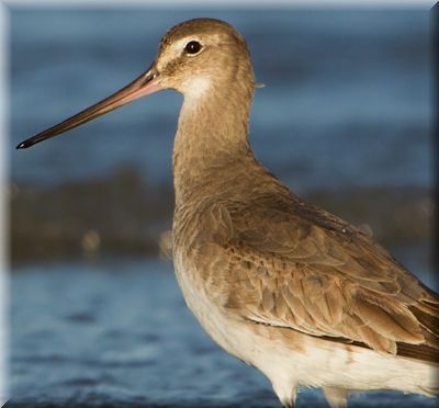 parduzco, ceja, ventral del cuello, pecho y ventral blancos, largo pico