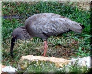 plomizo, dorso pardo oliváceo, pico rojo y celeste, 27 cm.